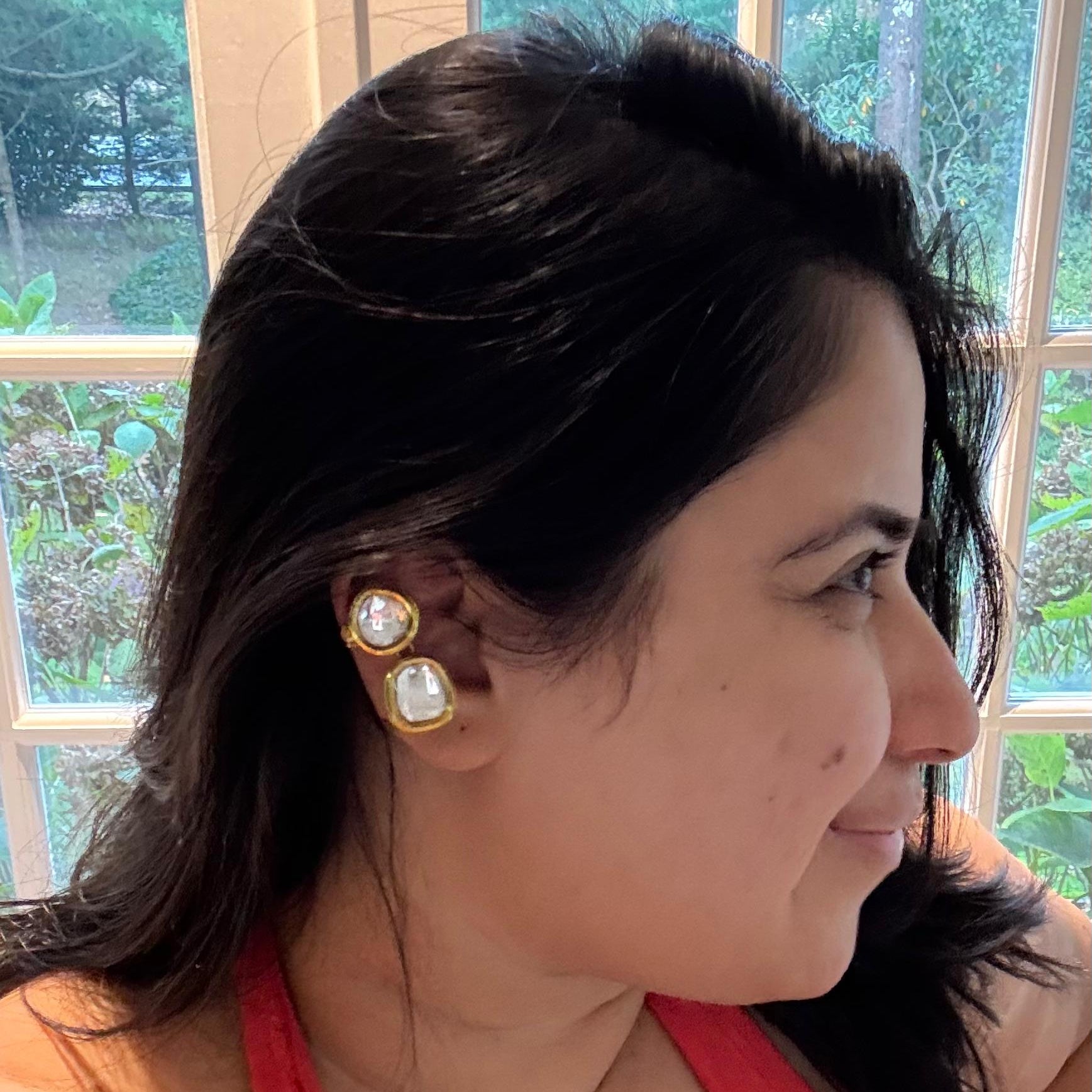 Elegant and luminous, the Noor Kundan Clip Ons are designed to make a refined statement without compromising on comfort. Featuring softly faceted kundan-style stones set in a rich gold-toned frame, this pair reflects light beautifully with every movement. Thoughtfully crafted with a clip-on fastening, they offer effortless wear while retaining a classic, heirloom-inspired appeal. Perfect for festive occasions, celebrations, or evenings that call for understated glamour.